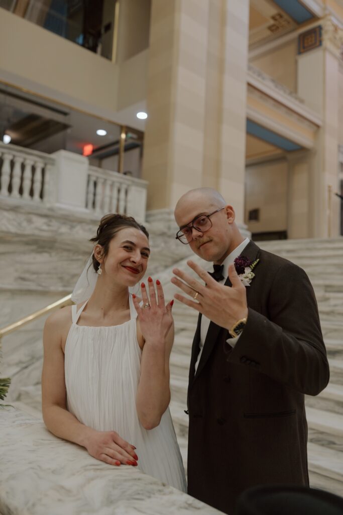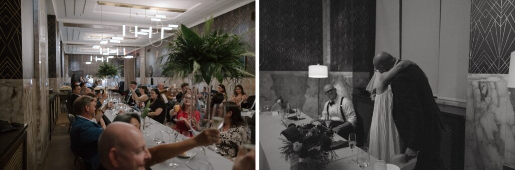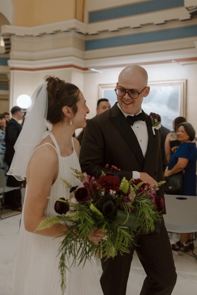After portraits, we made our way to the First National Hotel where the couple hosted an intimate reception. Even though the guest list was small, the space was beautifully styled with florals and thoughtful decor, creating a warm and celebratory atmosphere.